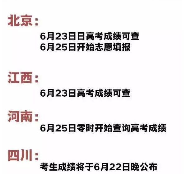 6月8日下午,全國(guó)大部分地區(qū)的2019年高考結(jié)束,與此同時(shí),多地公布了高考分?jǐn)?shù)查詢時(shí)間。據(jù)公開報(bào)道,目前,至少已有10余省公布了高考成績(jī)查詢的具體日期。其中,四川計(jì)劃于6月22日晚公布成績(jī);北京、湖北、江西、安徽、廣西、河北定于6月23日;新疆、吉林定于6月24日;山東定于6月25日前;河南、湖南考生則可于6月25日起對(duì)成績(jī)進(jìn)行查詢。 本文來(lái)源搜狐新聞